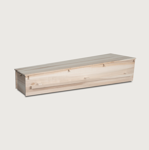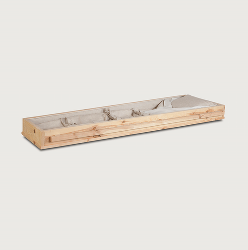 - De bekleding is van ongebleekt katoen inclusief een functionele lijkwade van watervast ongebleekt katoen.